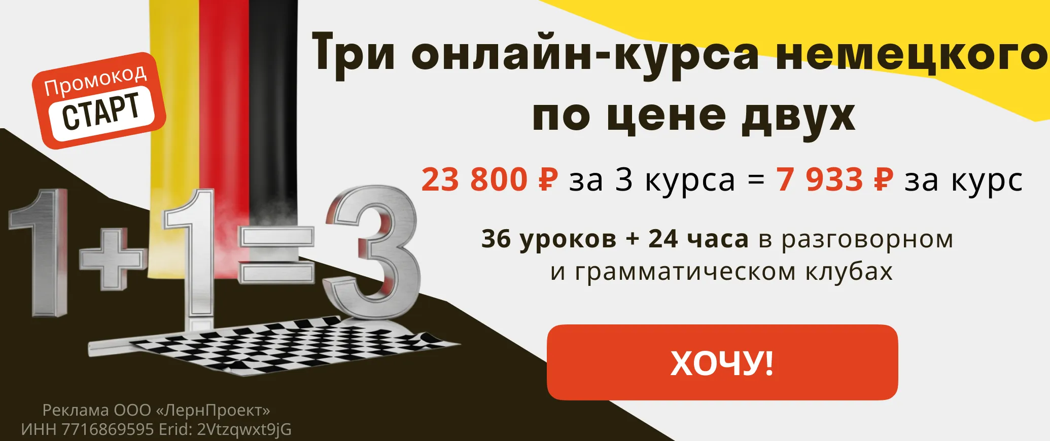 Интересуетесь жизнью в Германии? Может, мечтаете поступить в немецкий университет? Тогда без немецкого не обойтись. Записывайтесь на групповые онлайн-курсы немецкого языка от школы Deutsch Online прямо сейчас! Выбирайте свой уровень, дату старта и удобное время. Вы значительно экономите деньги, получаете реальное общение на немецком, регулярно тренируетесь и закрепляете знания. Сейчас идёт акция, не пропустите.